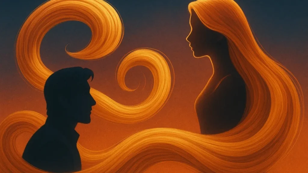 A relação entre Rapunzel e Flynn é construída em torno de descobertas e confiança mútua. O cabelo funciona como catalisador dessas mudanças.