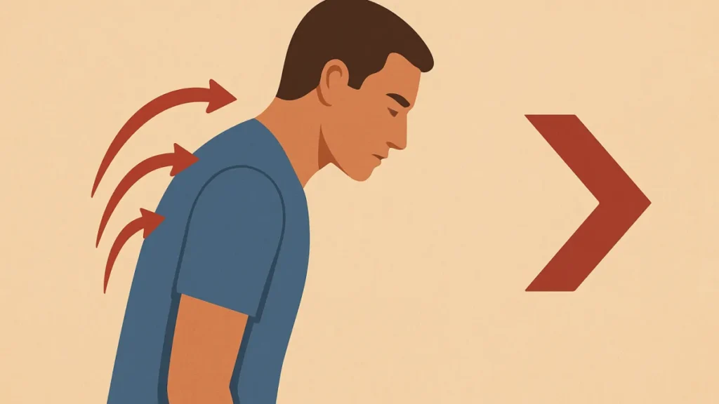 Isso costuma acontecer por repetição. O corpo aprende a postura que você mais usa. Se você passa o dia com braços à frente, tela perto do rosto e costas arredondadas, essa vira sua posição padrão.